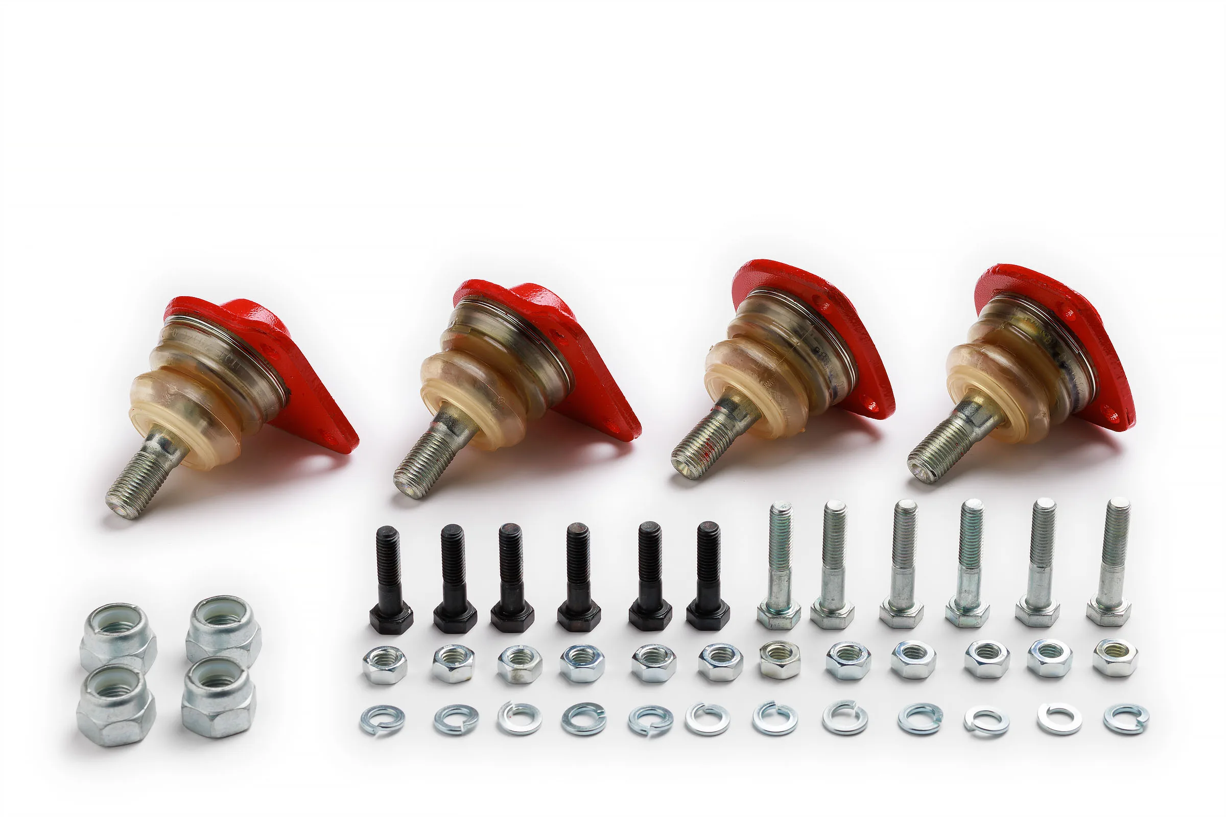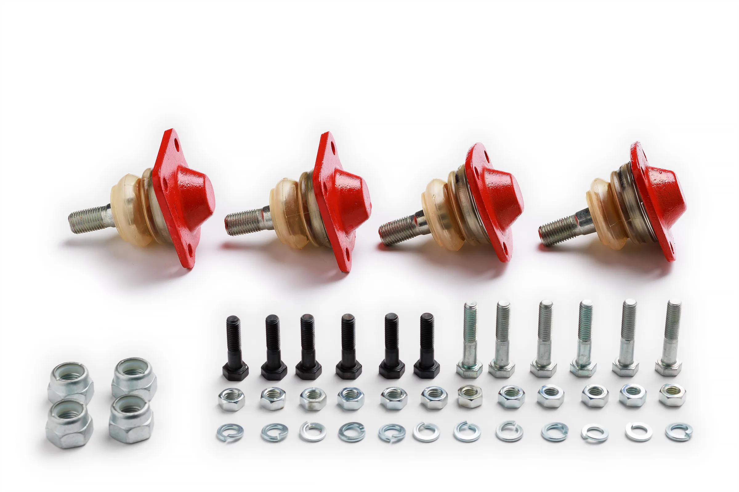 Гайки шарового пальца для крепления к поворотному кулаку, болты, гроверные шайбы для крепления опоры к рычагам подвески.