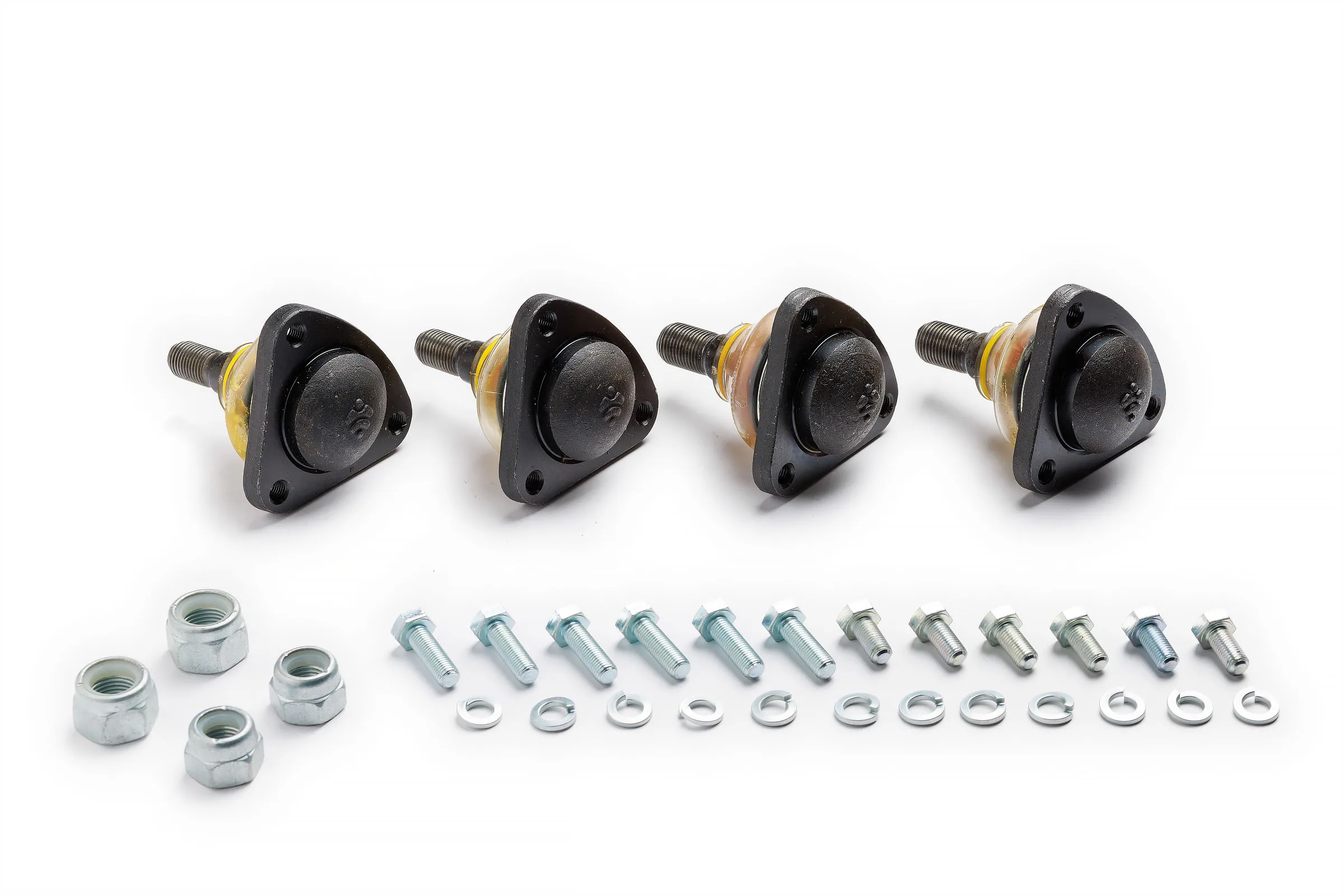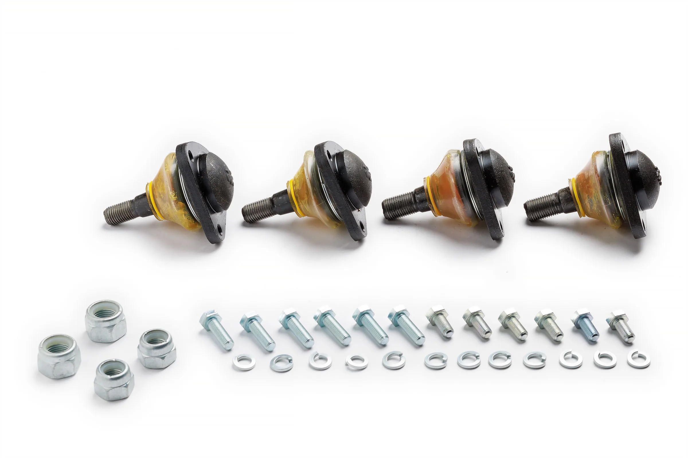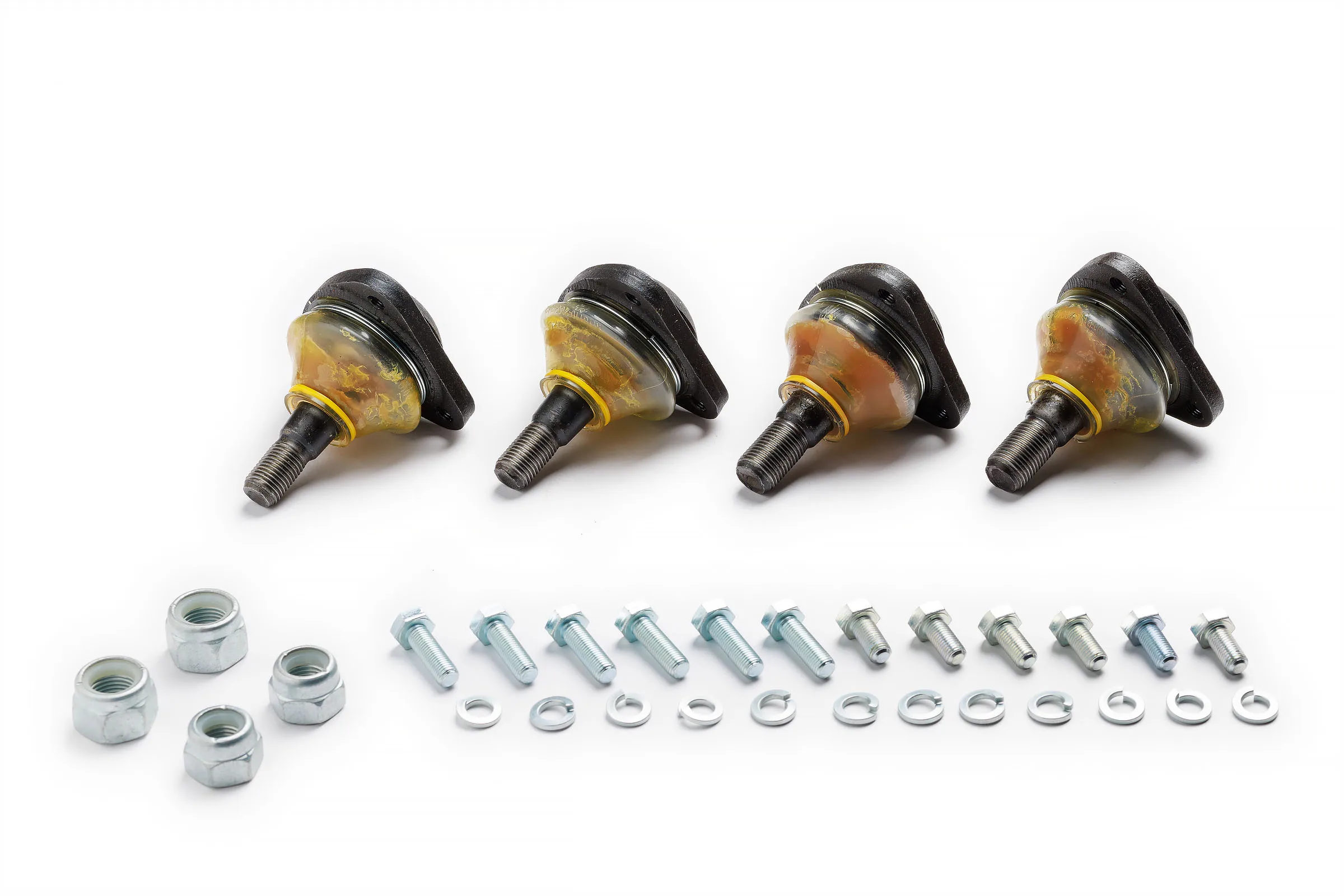 Гайки шарового пальца для крепления к поворотному кулаку, болты, гроверные шайбы для крепления опоры к рычагам подвески.