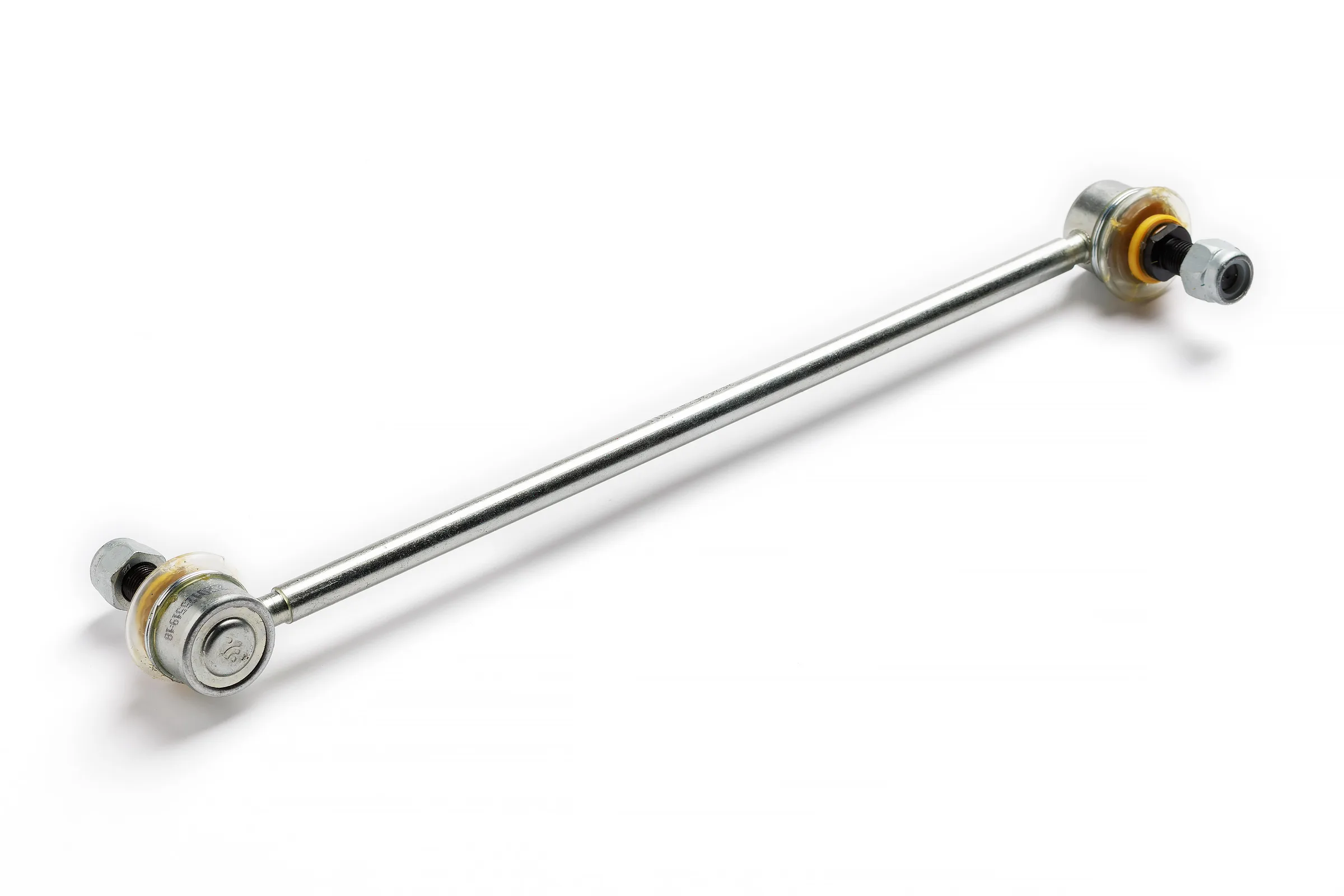 Параметры стойки стабилизатора: Межцентровое расстояние: 360 мм Угол разворота голов: 180 ° Параметры шарового пальца: Диаметр резьбы: 12 мм Шаг резьбы: 1.25 мм Длина резьбовой части: 26 мм Рекомендуемый момент затяжки гайки шарового пальца 55 Н·м - 80 Н·м