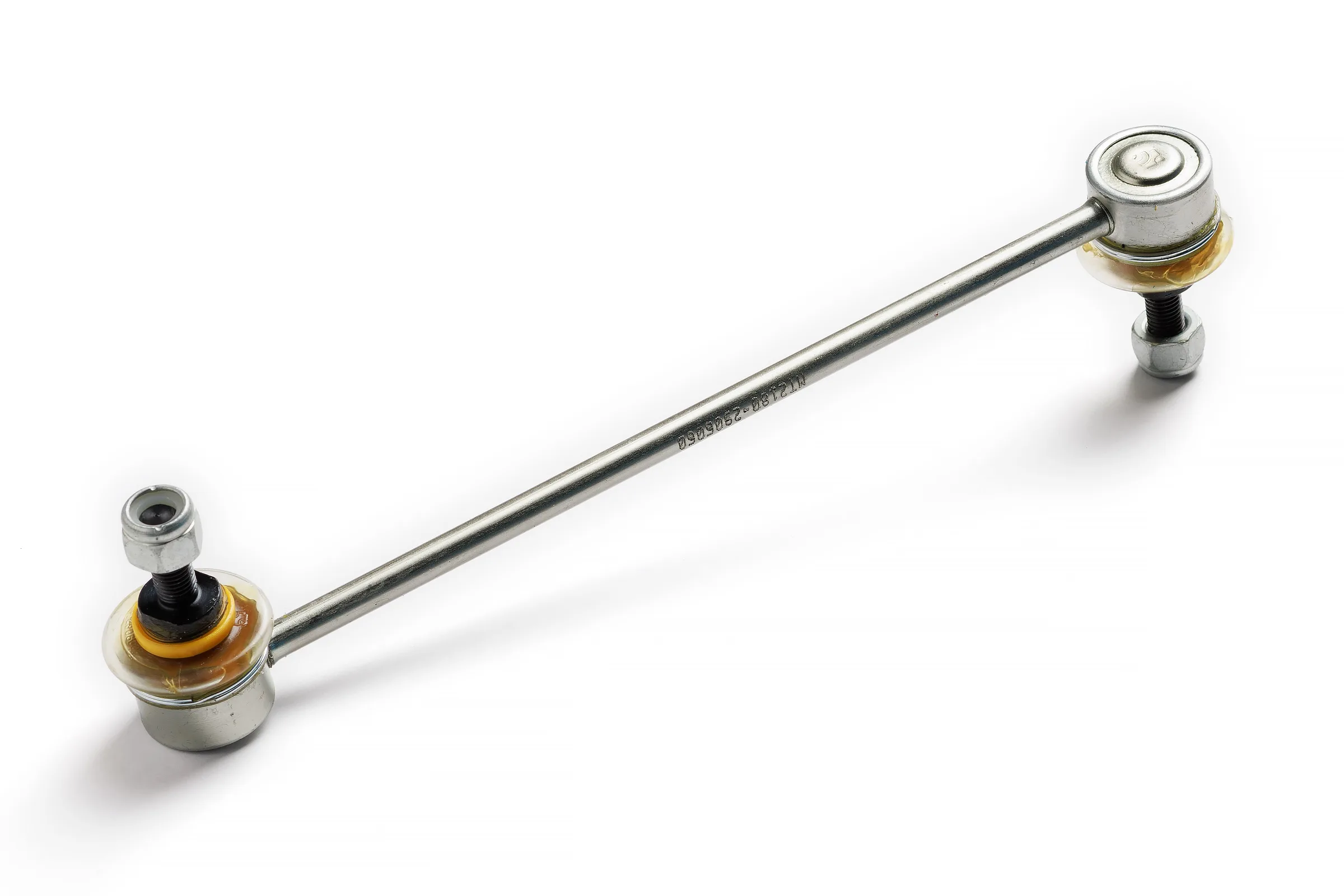Параметры стойки стабилизатора: Межцентровое расстояние: 275 мм Угол разворота голов: 180 ° Параметры шарового пальца: Диаметр резьбы: 10 мм Шаг резьбы: 1.25 мм Длина резьбовой части: 24 мм Рекомендуемый момент затяжки гайки шарового пальца 53 Н·м - 71 Н·м
